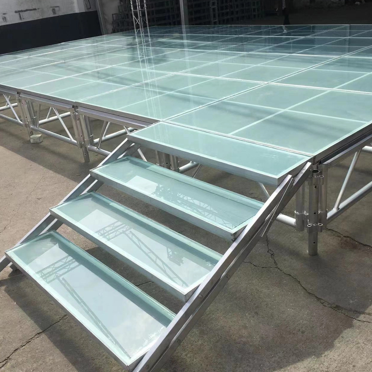 पारदर्शी समायोज्य ऊंचाई इवेंट कॉन्सर्ट एल्यूमिनियम फ्रेम ऐक्रेलिक प्लेटफार्म स्टेज