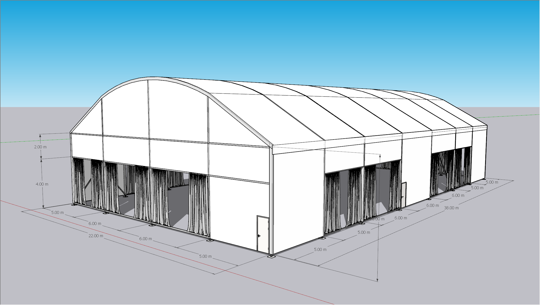 दीवार | 1. भारी ड्यूटी व्हाइट 650 ग्राम/वर्गमीटर पीवीसी फैब्रिक, सेमी-ब्लॉकआउट, 100% वॉटरप्रूफ, फायरप्रूफ (DIN4012 B1, M2), यूवी प्रतिरोधी। 2. विस्फोट रोधी कांच 3. पॉलीयुरेथेन बोर्ड 4. एबीएस बोर्ड |